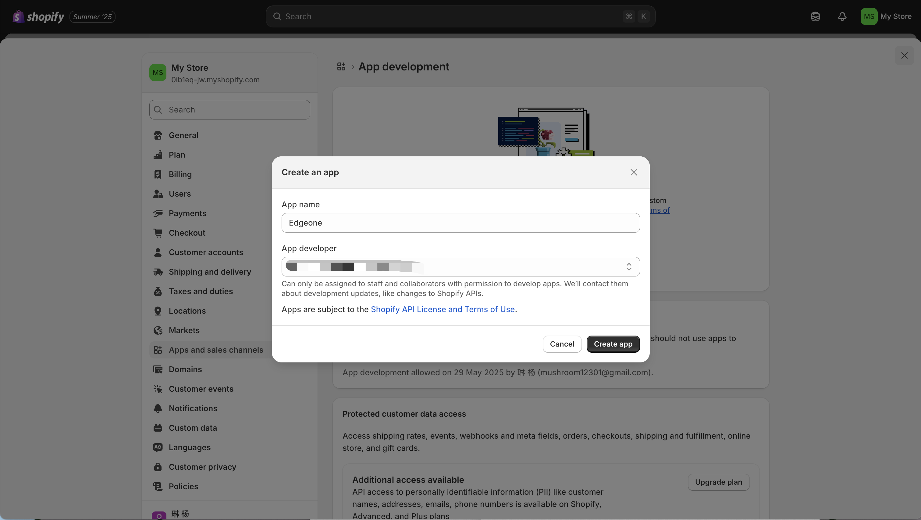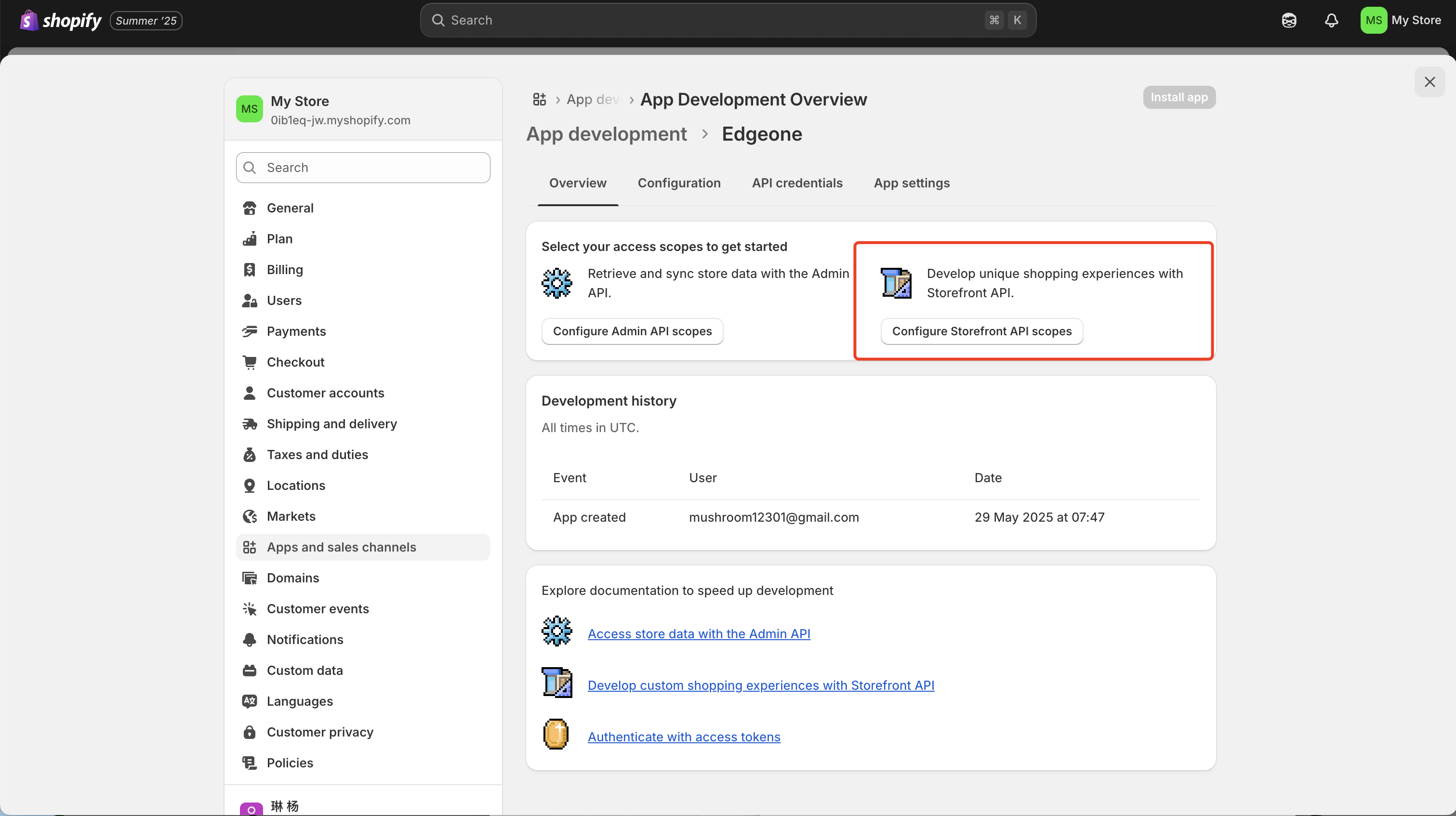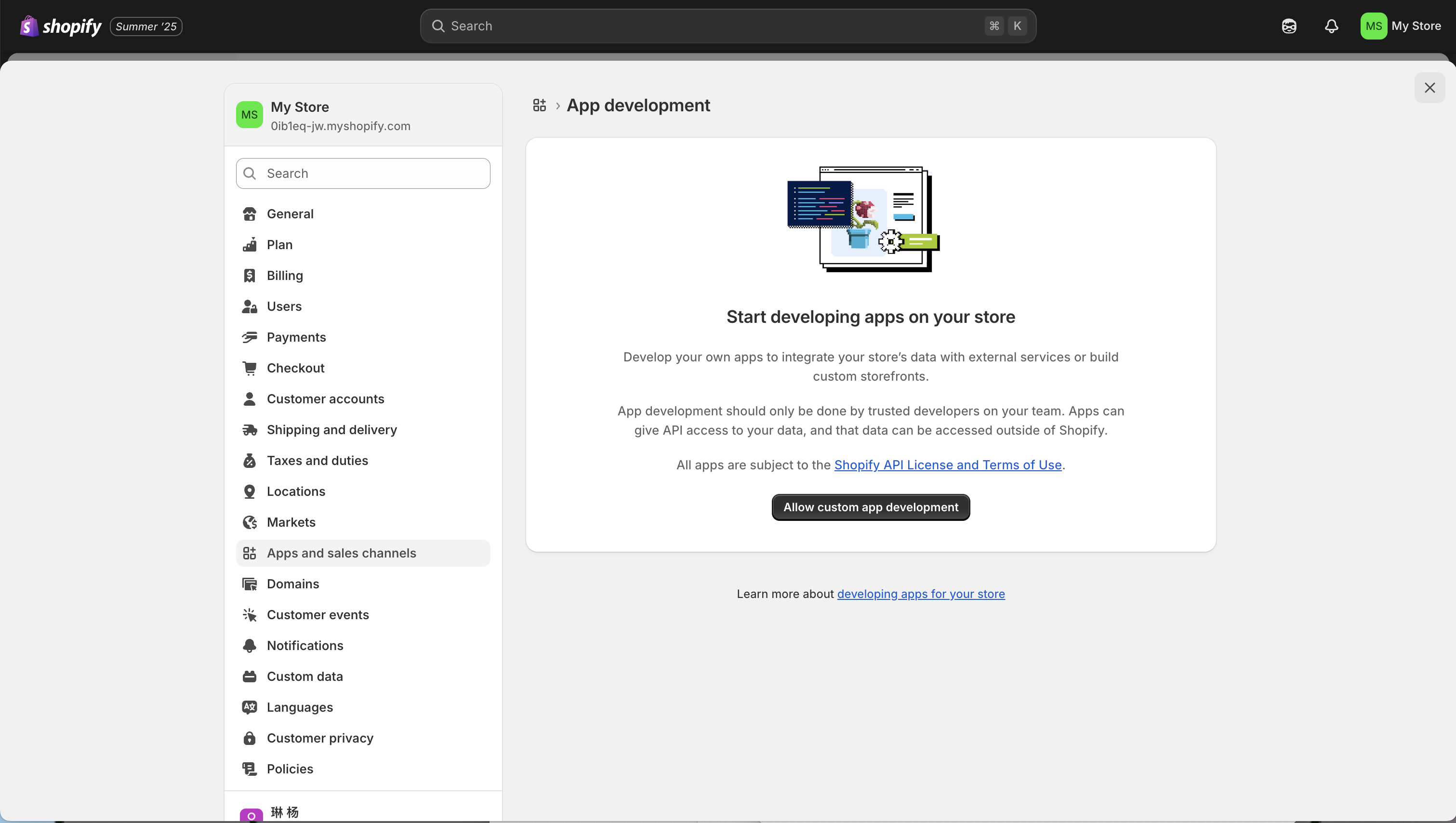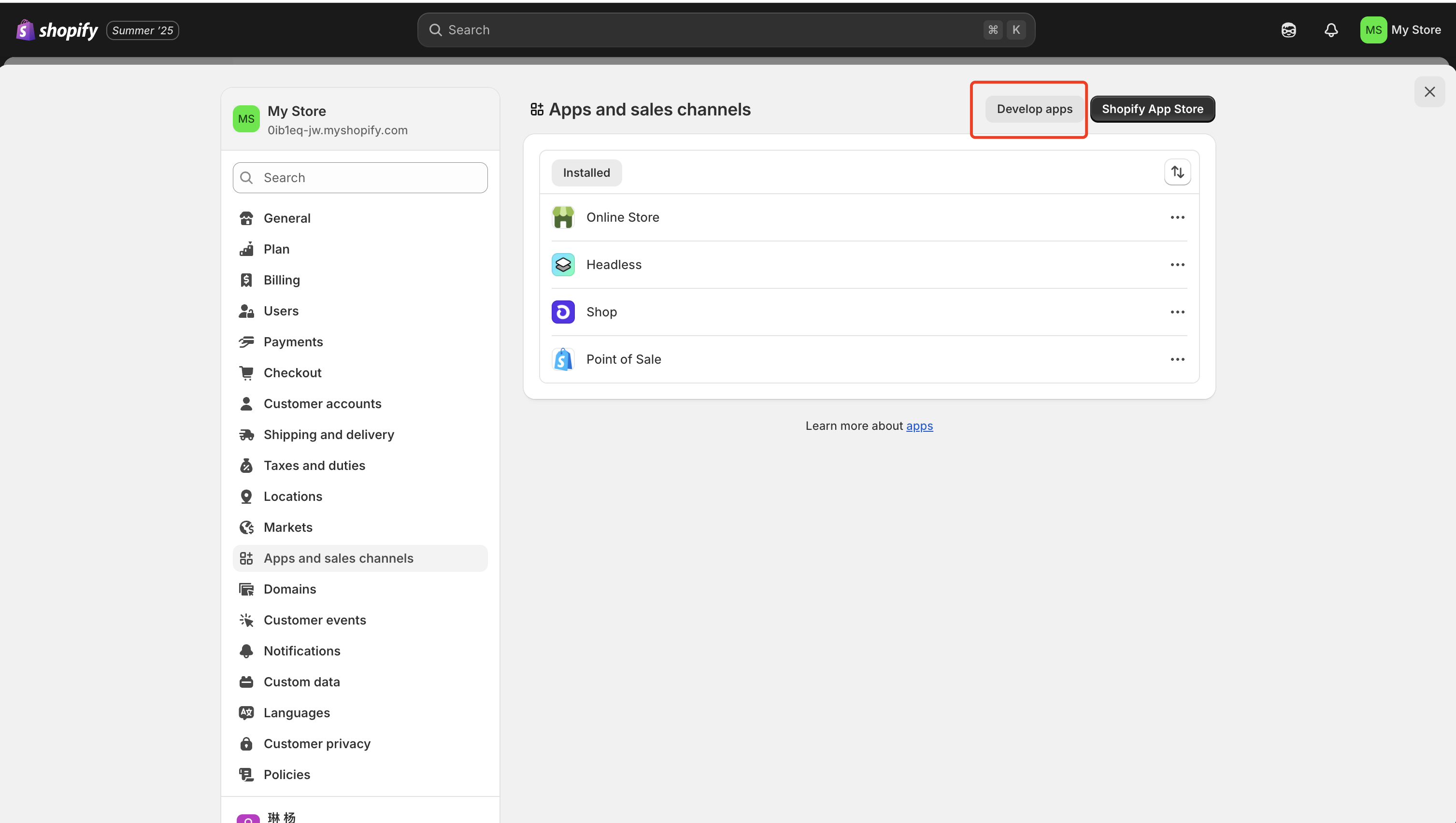 Enter Shopify Dev to register a new account and create a store. After creation, enter your store's admin backend.