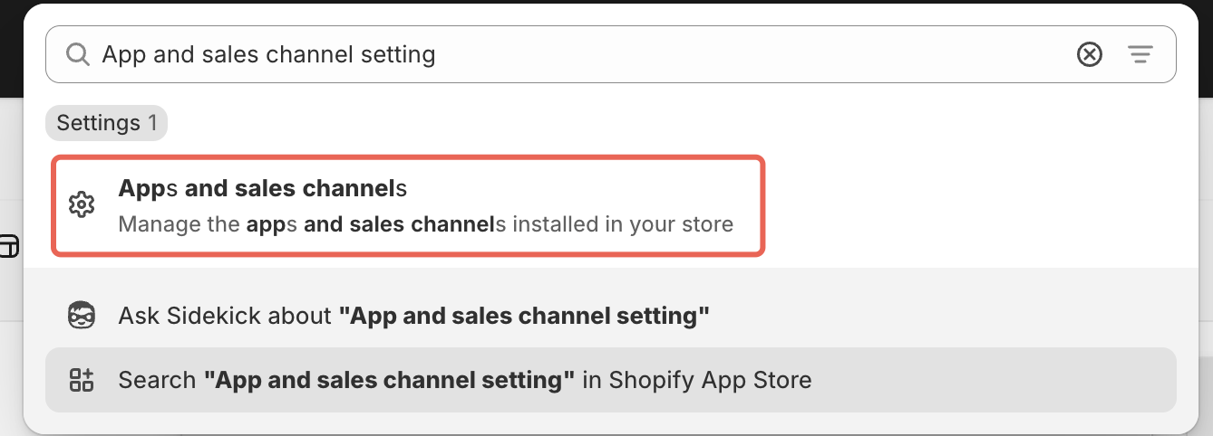 App and sales channel setting, and click the App and sales channel setting at the bottom.