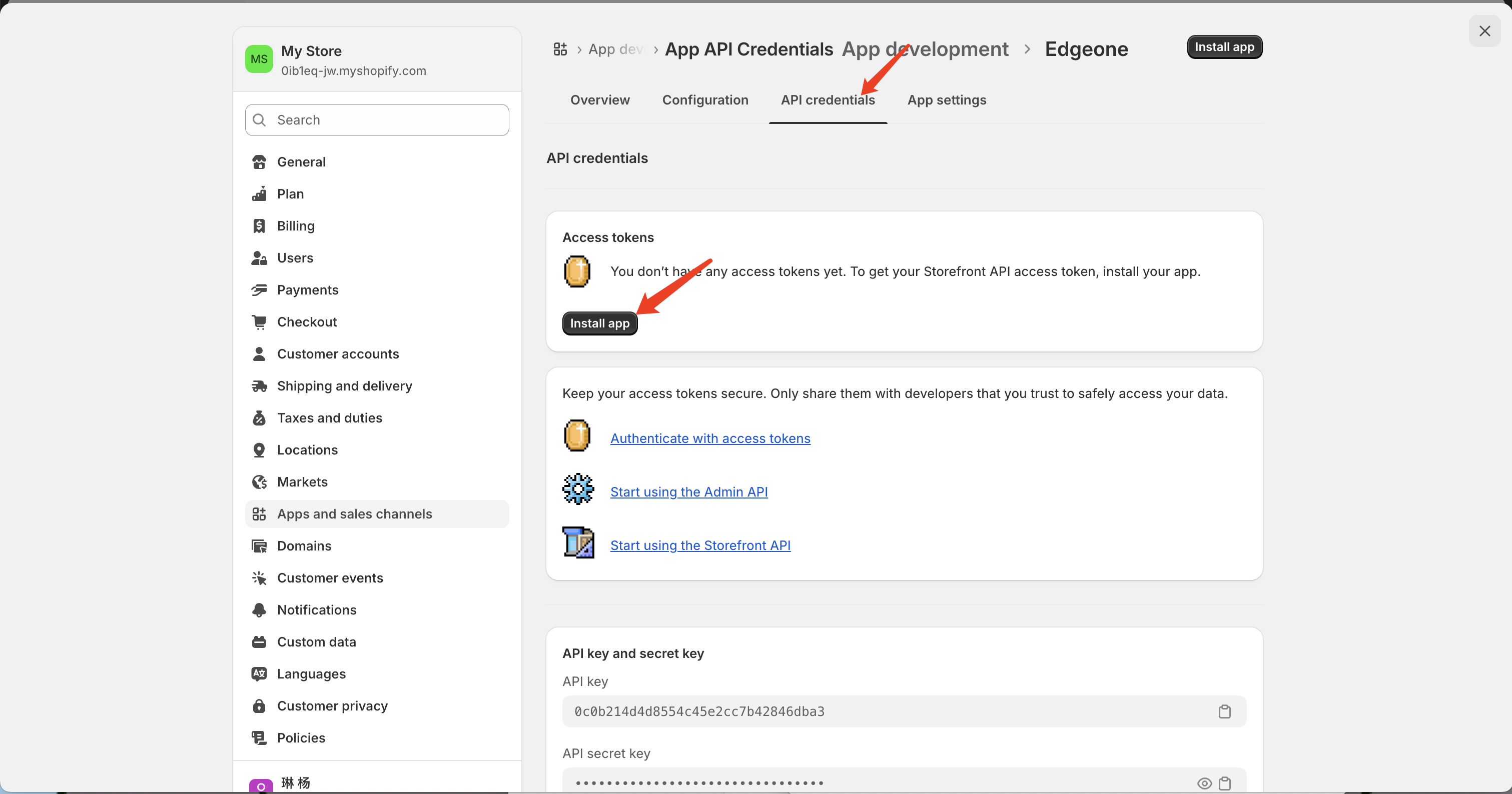 After configuration is complete, save. Enter the API Credentials tab, and install the application to get