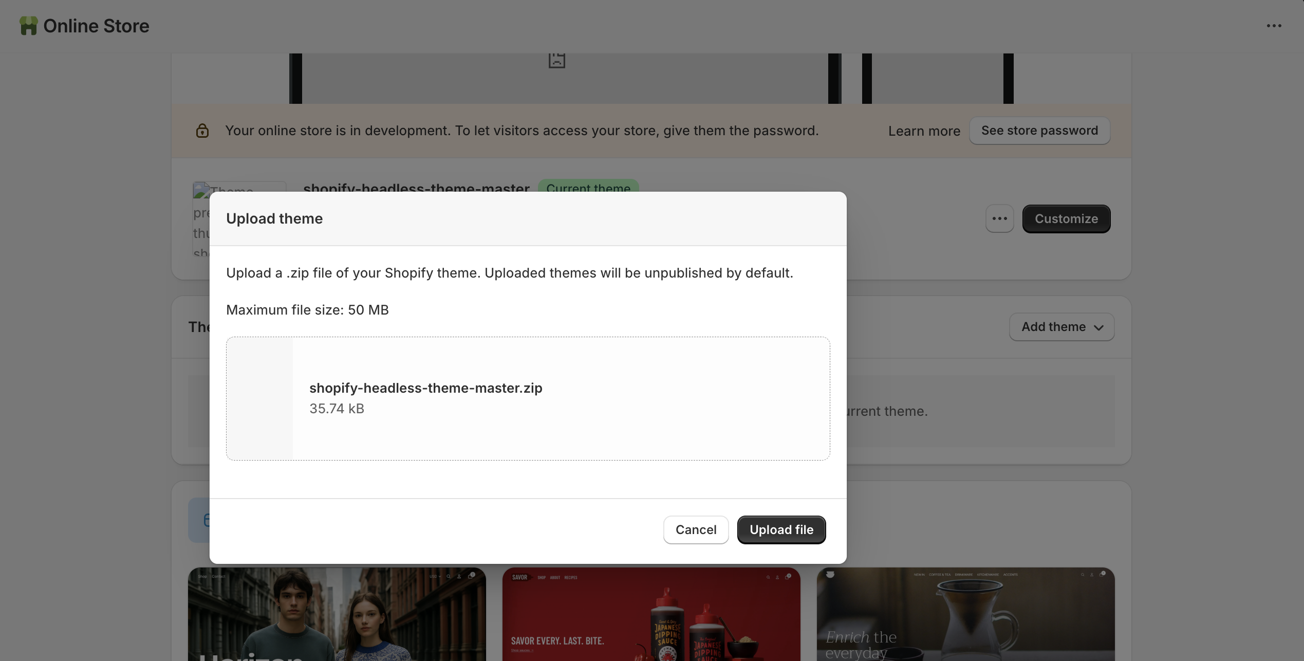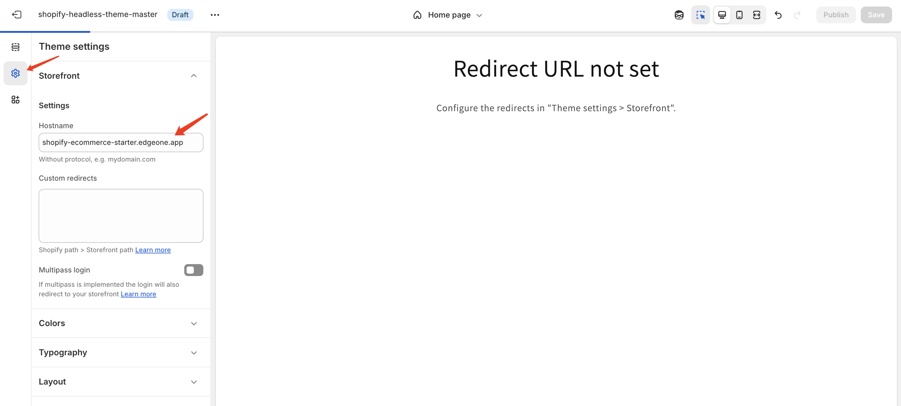 A custom e-commerce website implemented using the Storefront API will have its own store domain name. Shopify Headless Theme needs to be installed to connect Shopify's built-in webpages with your custom site.